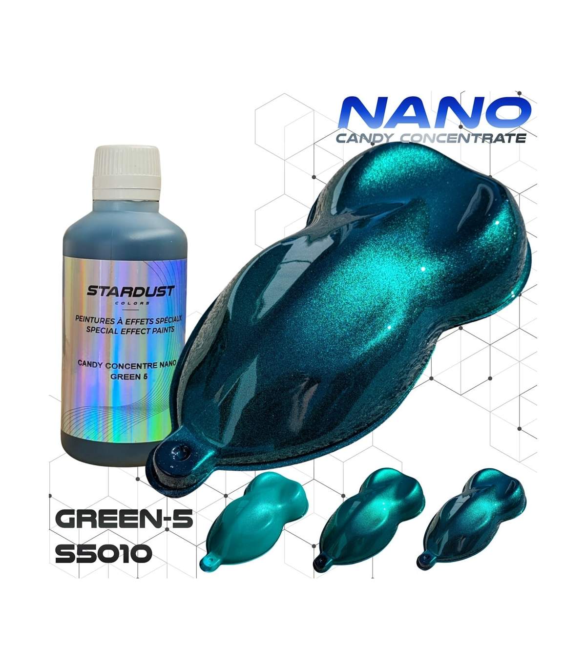 Voor het creëren van transparante kleureffecten op reflecterende metallic of parelmoer verf, of op ruwe materialen om deze te kleuren, in combinatie met metalen vernissen, glas- en keramiekvernissen en carbonvernissen.