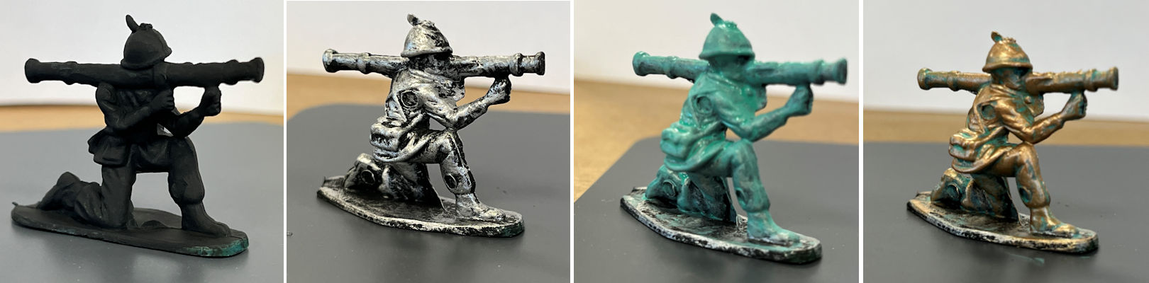 De complete sets bevatten 4 gebruiksklare producten voor de 4 stappen om het bronspatina-effect te verkrijgen.